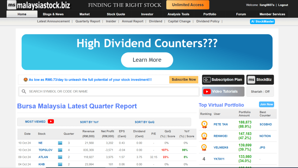 MalaysiaStock.Biz is another highly useful website for local investors. It provides detailed information on dividends, corporate actions, and financial data of Malaysian listed companies.