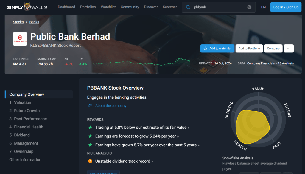 SimplyWall.St is another fantastic tool that every investor should consider. It provides visually engaging, data-driven insights to help you analyze stocks. What sets SimplyWall.St apart is its snowflake analysis—a unique feature that visually breaks down a company’s valuation, financial health, and dividend potential in an easy-to-understand graphic.